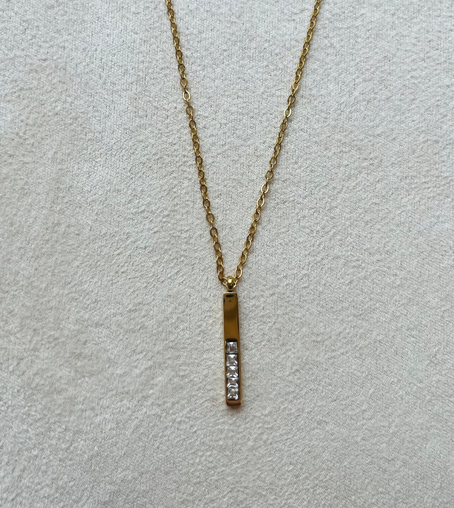 Le collier Lumina incarne l’élégance discrète et la finesse moderne. Sa chaîne délicate en acier inoxydable doré met en valeur un pendentif minimaliste orné de zirconiums lumineux, créant un bijou raffiné et intemporel, parfait pour un look quotidien ou une occasion spéciale.